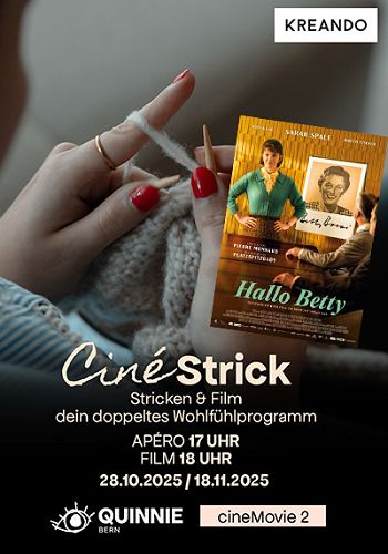 Wir haben eine neue Rubrik: cinéStrick! Im cineMovie2 am 18. November 2025 um 18:00 Uhr. Vorab offerieren wir zusammen mit KREANDO AG ein Apéro ab 17:00 Uhr. Bring deine Strick-Utensilien mit und stricke bis die Finger glühen.