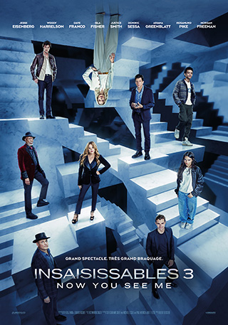 Avec INSAISISSABLES 3, le thriller sur les magiciens entre dans sa troisième phase. Le film entraîne à nouveau le public dans le monde des illusionnistes voleurs connus sous le nom de 'Four Horsemen' et présente une nouvelle génération de magiciens. Les acteurs Jesse Eisenberg, Woody Harrelson, Isla Fisher, Dave Franco et Morgan Freeman sont de retour pour ce nouveau film, tandis que Justice Smith, Dominic Sessa, Ariana Greenblatt et Rosamund Pike apparaîtront dans de nouveaux rôles.
